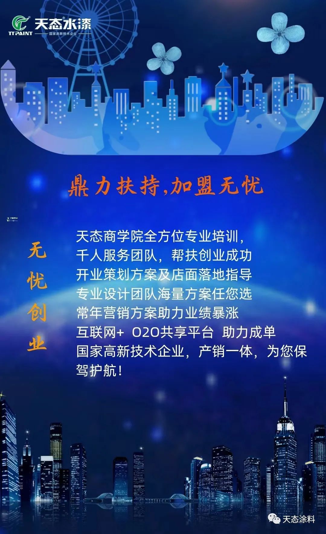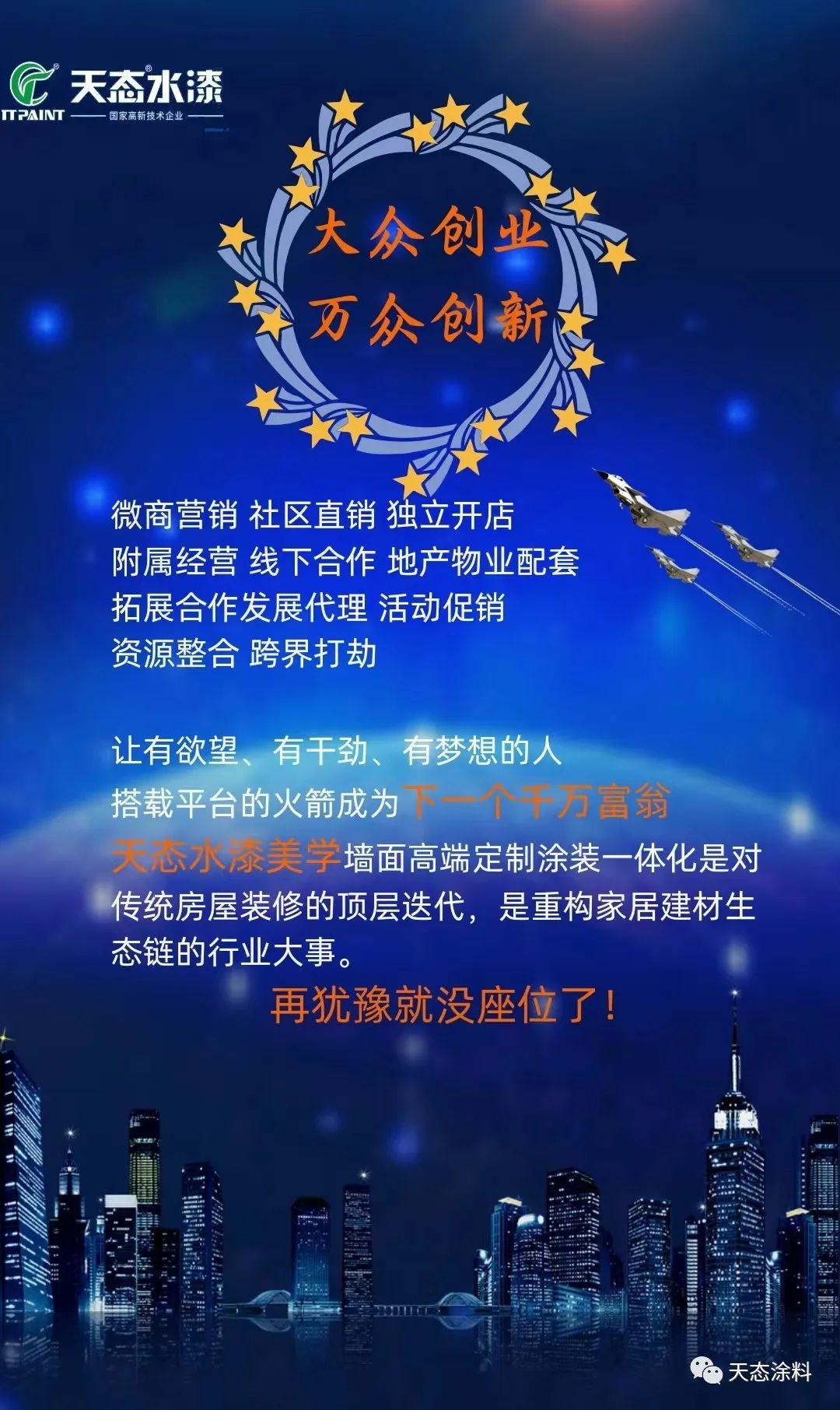 天态水漆盛大招商开启中!诚招全国空白区域独家区域代理!让天态带您一起向钱看...