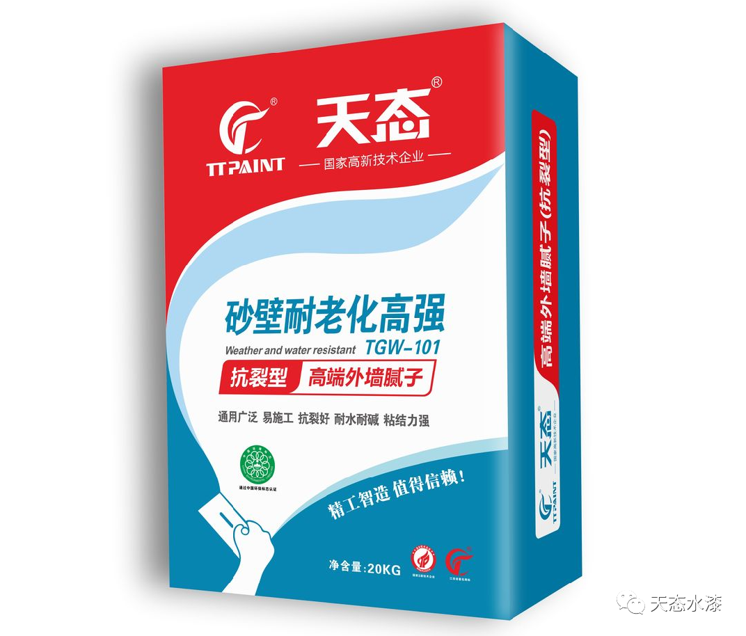 天态矿物耐老化高强腻子由优质进口胶粉天然无机凝胶材料,多种功能助剂精制而成,是一种为高要求耐老化打造的一款高端墙面抗裂材料。通用性能,耐水耐碱,抗裂良好,抗粉化性良好强度高,粘结力好、耐老化耐候性好。施工性能优异,现场加水搅拌均匀即可使用。